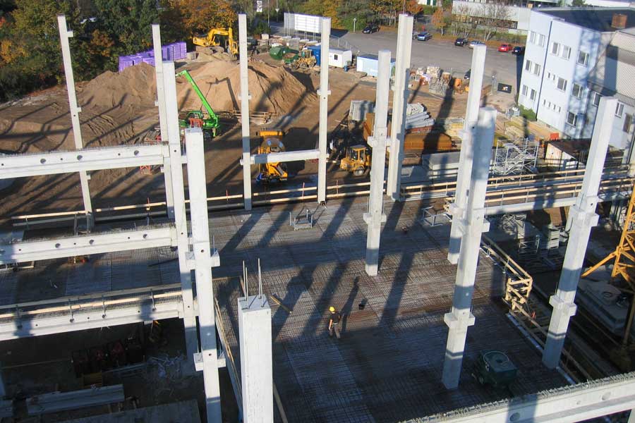 Neubau mit Stahlbetonfertigteilen