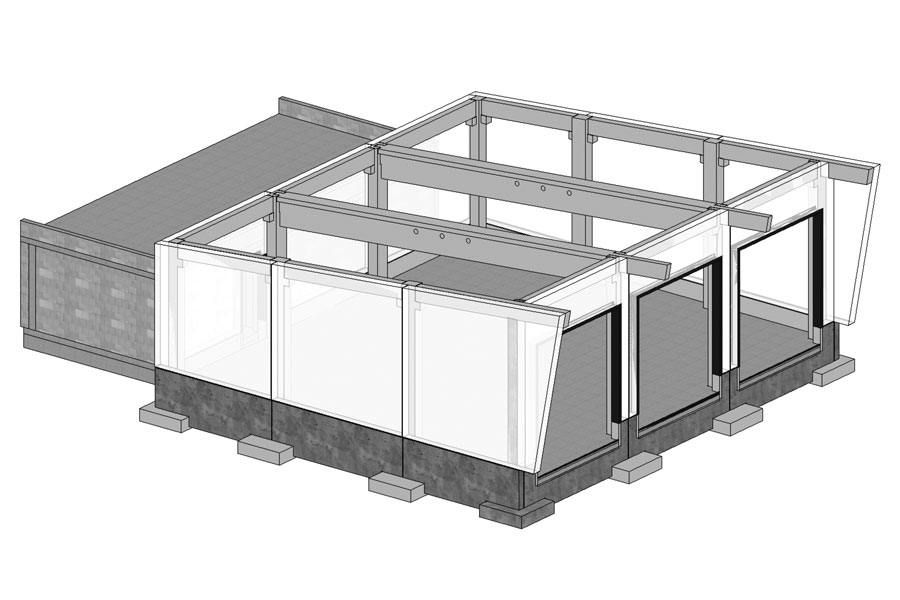 Anbau an die Fahrzeughalle als getrennter Baukörper, Mauerwerksbau
