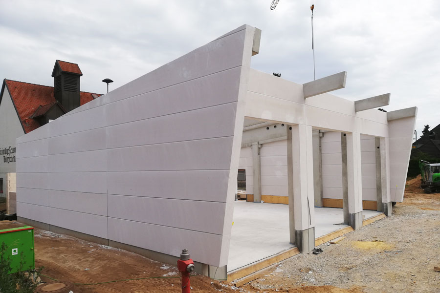 Neubau der Fahrzeughalle mit drei Toren in Stahlbetonfertigteil-Bauweise
