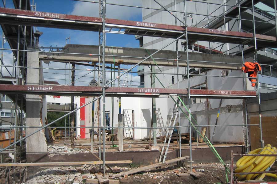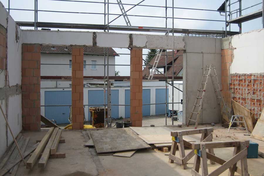 Abbruch der bestehenden Holzbalkendecke über dem Erdgeschoss und Einbau der neuen Decke in Massivbauweise