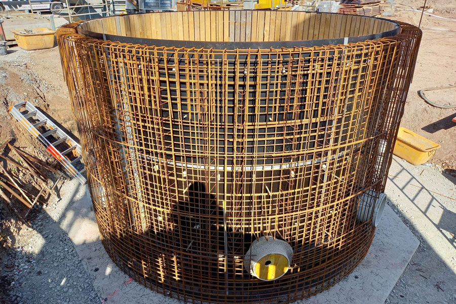Neues Verteilerbauwerk als Stahlbetonbau mit mehreren konzentrischen Kammern