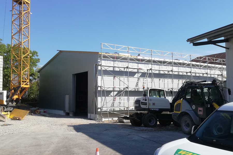 Neubau einer Lagerhalle in Stahlbauweise und einer Anlieferungszone in Massivbauweise
