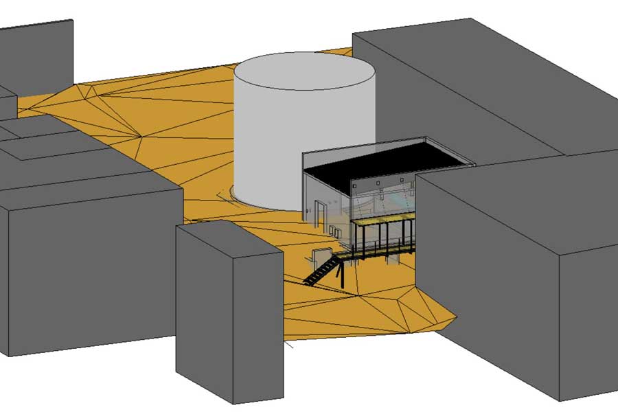 Treppen und Steg am Technikbau als Stahlkonstruktion