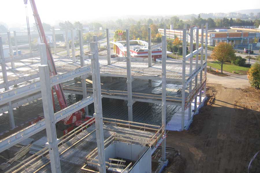 Neubau mit Stahlbetonfertigteilen