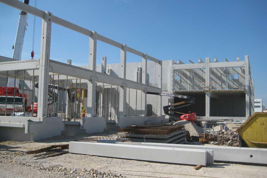 Neubau mit den Gebäudeabschnitten Produktion und Verwaltung