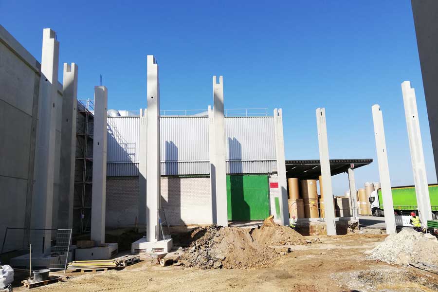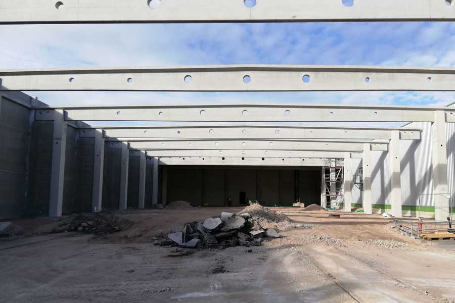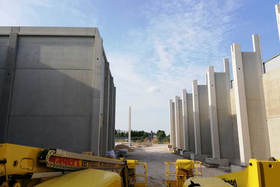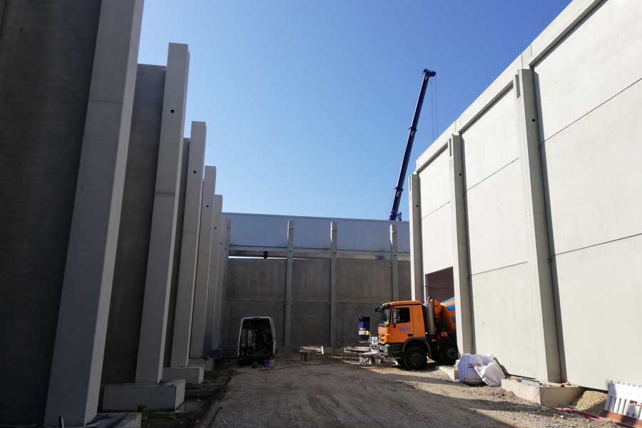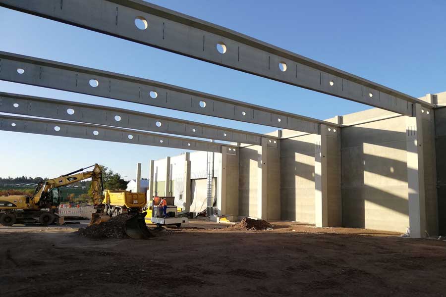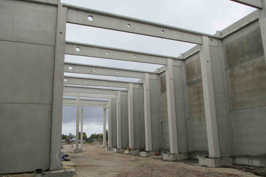 Konstruktion in Fertigteil-Skelettbauweise aus Stahlbeton